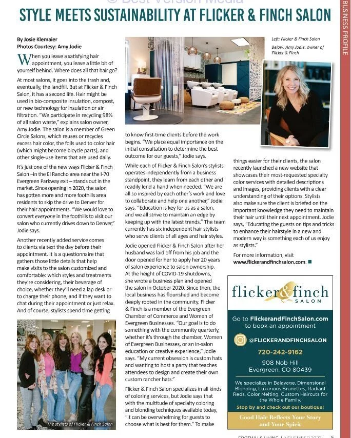 Located in the foothills of Denver in beautiful Evergreen, CO, weβve created a luxurious space for our clients to collaborate with their stylist, then sit back, relax, get pampered and be transformed. We are proud to offer high quality and professional salon services for women, men and children. Whether you are in search of a simple, sleek look, sumptuous lived-in color, or a fun, edgy style, weβve got you covered.